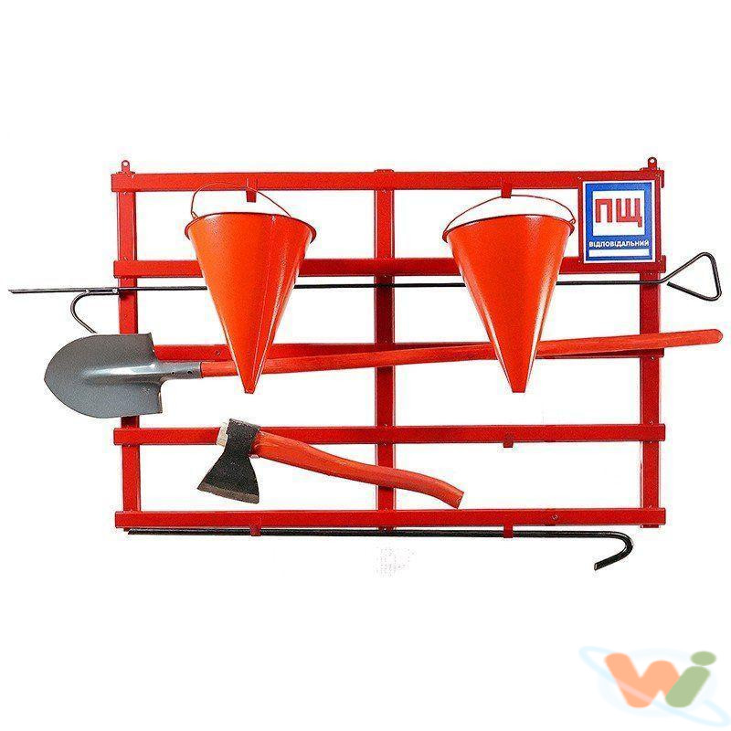 — Пожежні щити відкритого типу. Це просте та зручне рішення: інвентар розміщений на гаках для миттєвого доступу. Вартість: без комплектації — 690 грн з ПДВ, з комплектацією (багор, лом, лопата, сокира, 2 відра) — 1962 грн з ПДВ.