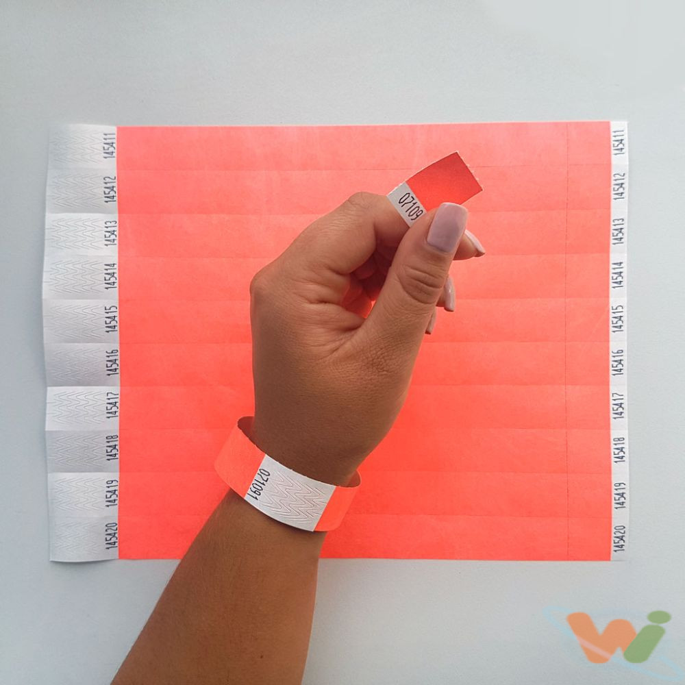 Одноразовий контрольний браслет з вашим логотипом Кораловий 100 шт – це економічне та практичне рішення для ідентифікації та контролю доступу на заходах різного масштабу. Виготовлені з міцного та вологостійкого матеріалу Tyvek, ці браслети забезпечують надійну фіксацію на зап’ясті завдяки одноразовій клейовій застібці.