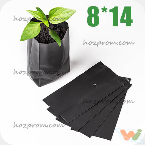 Ідеальні для кореневої системи рослин чорні поліетиленові пакети розміром (мм) 80*140, об’ємом 0,45 л з дренажними отворами для стоку води. Виробник Україна.