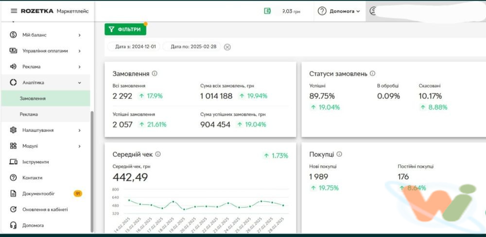 1. Действующий магазин на Rozetka с высоким рейтингом (5.0) и стабильным потоком заказов — около 800 заказов в месяц и более 1000 положительных отзывов.