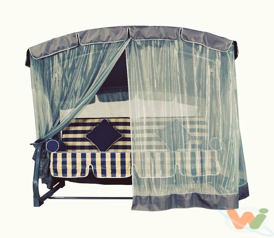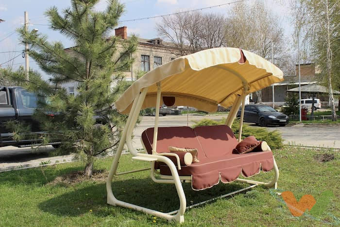 Гойдалки садові мають спеціальний навіс, який захищає від сонця та дощу, а його нахил можна регулювати, м’які сидіння, які трансформуються у спальне місце, перебування в яких зручне та приємне, москітну сітку для захисту від комарів.