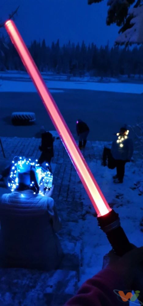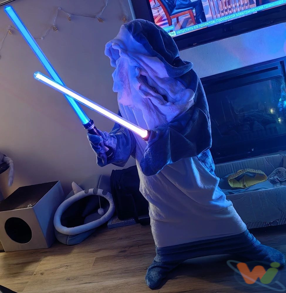 Подарите себе или близким ощущение эпической битвы с этим световым мечом длиной 67 см. Лазерный меч впечатляет яркими световыми эффектами и громкими звуками, имитирующими схватки галактического масштаба.