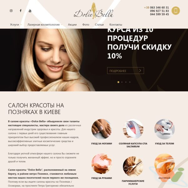 2. Сервис. Зайдите на сайт и осмотрите спектр услуг, есть ли там нужные для вас процедуры и насколько обширный сервис. Например, салон красоты Осокорки Dolce Bella предлагает уход за руками и ногами, СПА, солярий, уход за телом, парикмахерские услуги и много других процедур. Это удобно, ведь выбор позволяет подобрать себе то, что нравиться и максимально расслабляет.