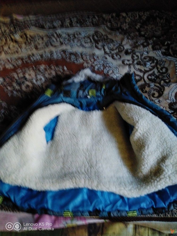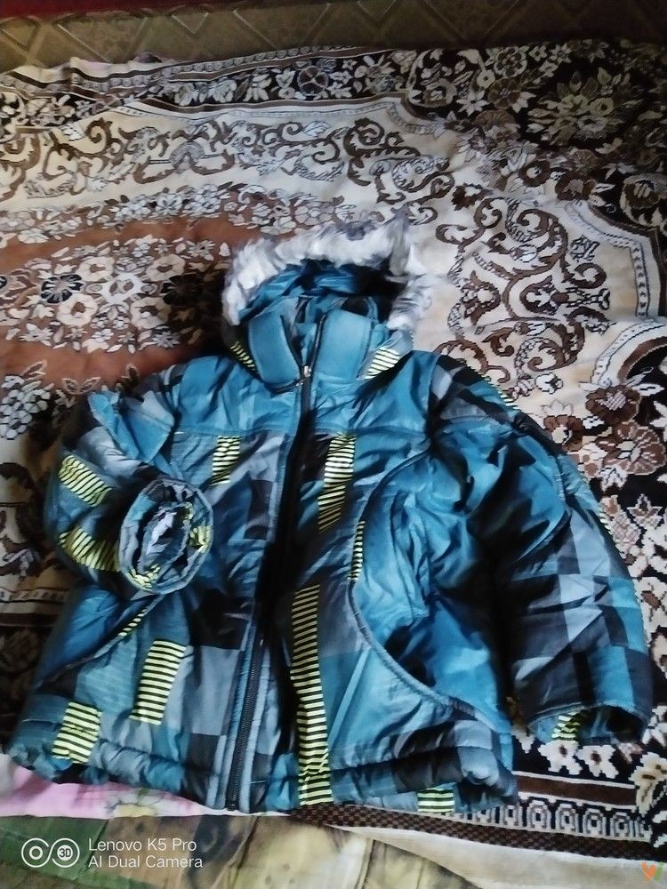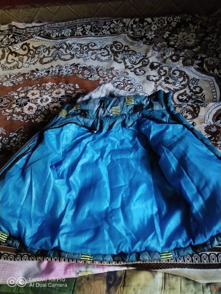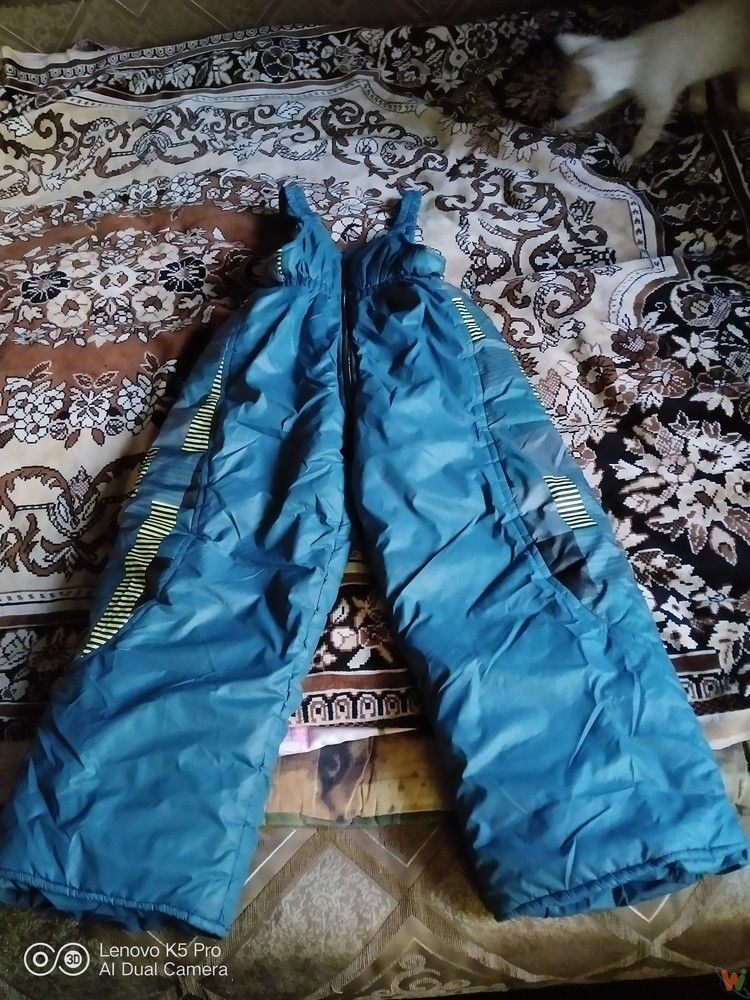 Зимний костюм-куртка и штаны на резинке. Подстежка в куртке -овчина, отстегивается. Рукава и штанишки фиксируются резинкой (на фото видно) Четыре кармана. Состояние отличное, без изъянов. Рост -116. Длина куртки- 47см., длина рукава – 44см., ширина куртки – 44 см. Штаны – длина- 80 см +шлейки – резинка Вайбер 097-767-79-30