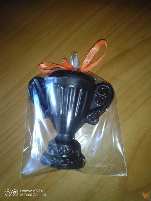 Изготавливаю шоколадные изделия на заказ. Шоколадная фигурка ввиде кубка победителю. Высота 9см. Вес (половинка) 80грм. Стоимость 60грн. (с золотым или серебряным напылением -65грн.) Так же возможно сделать целый кубок. Вес 165грм. Стоимость 120грн.(с золотым или серебряным напылением -130грн.) Вайбер 097-767-79-30