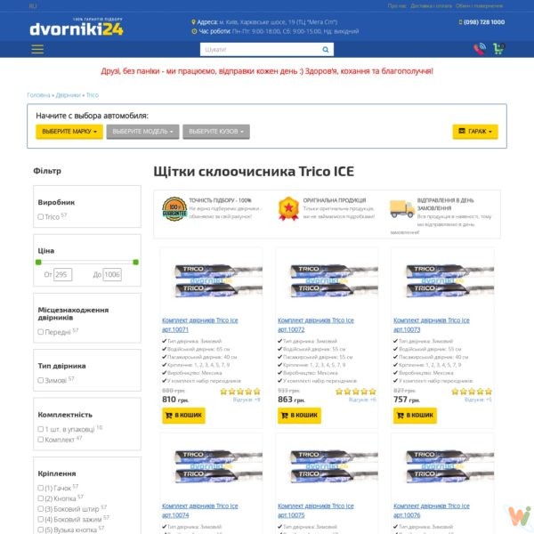 При выборе дворников следует ориентироваться на марку авто, производителя и модель продукции, конструкцию и размеры изделий (dvorniki24.com.ua/wipers/trico/ice). Значение также играет наличие датчика износа и спойлеров.